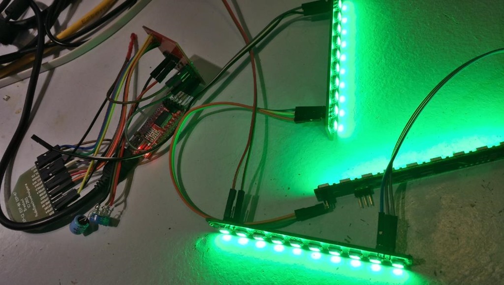 That is a good point about the first LED and I will do some tests with longer cables – it should be trivial to do a check for the first pixel (a flag) and zero out the RGB component…. but up to now with the current software I’d not seen any issues.