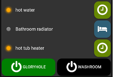 If you look at the code below, you could be forgiven for asking why the delay nodes – well, all I can say is without them I was getting unreliability in state control. It could also be that I cloned the gloryhole node to the washroom without resetting node-Red – that’s been known to cause problems in the past. Anyway, here goes…