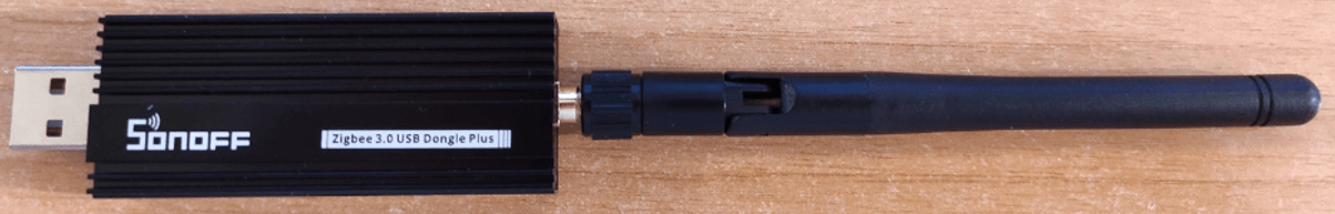 Power consumption of the new Itead (Sonoff) unit is 100ma max at 5v (USB). In keeping with the name on the website, the dongle itself is marked (on the back) as ZBDongle-P and on the front as Zigbee 3.0 USB Dongle Plus – and comes with a detachable antenna. I use this with Zigbee2MQTT on Raspberry Pi 4.